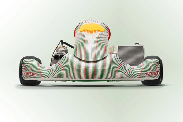 The kart is supplied as a rolling chassis with 50mm axle, BSD brake system and 180mm disc. It comes with a Tonykart seat and MXJ rims,
